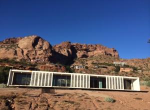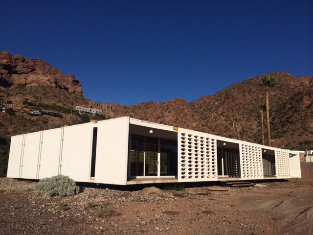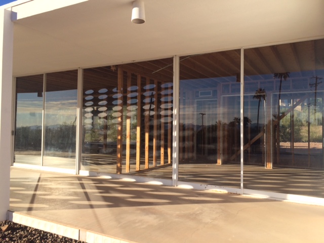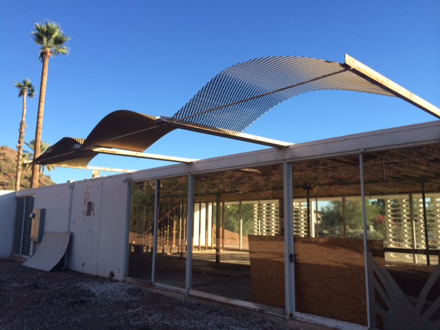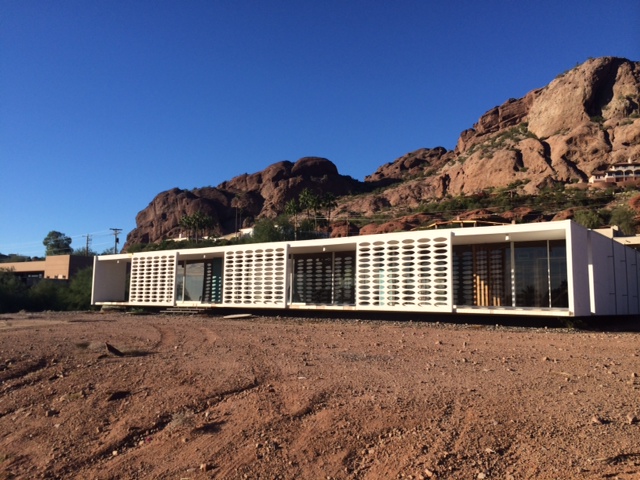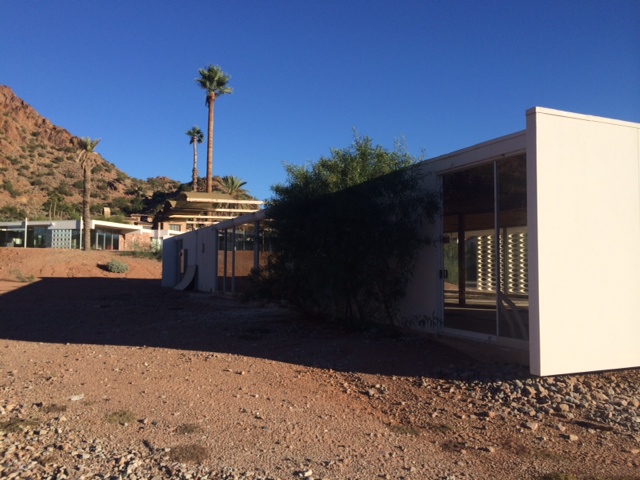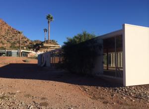 Although much work is needed, our minds instantly began racing with visions of natural desert landscaping and intricate interior pieces to compliment such a home. Walking around to the back of the home, there was no patio area as commonly found among other homes in the valley but we imagine the contractor and architect hired to restore "White Gates" will construct something complimentary, blending the homes clean lines with rough asymmetrical shapes of Camelback Mountain draping over the homes back drop.